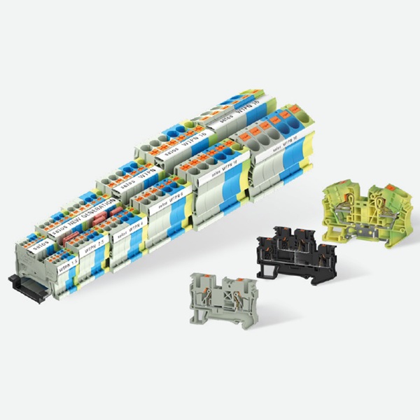 ¡Cableado sin esfuerzo y sin herramientas! La gama de bornes WIELAND destaca por su tecnología de conexión Push-In para un montaje de cables rápido y sin herramientas. Los conductores rígidos o con puntera se pueden insertar directamente sin herramientas. Para reducir aún más el tiempo de instalación, la serie ofrece puentes enchufables, marcadores de tira continua, software de diseño, sistemas de etiquetado y mucho más.