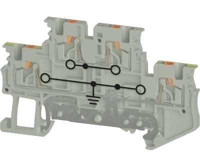 Bornes de doble piso WTPN 1.5 EL PE tensión asignada 500 V, corriente asignada 17,5 A, Conexión Push-In, número de pisos 2, número de conexiones por piso 2, sección nominal del conductor 1,5 mm², tamaño del cable de conexión semirígido sin puntera 0,14mm² – 1,5mm², método de montaje Carril DIN (top hat rail), color Gris, anchura del borne 3,5 mm, tipo de inflamabilidad del material de aislamiento según ul94 V0.